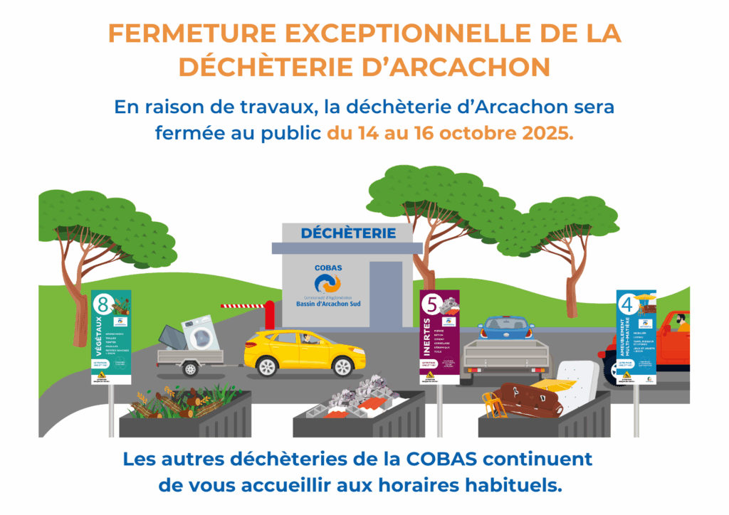 Accueil » Blog » Fermeture exceptionnelle de la déchèterie d’Arcachon du 14 au 16 octobre 2025